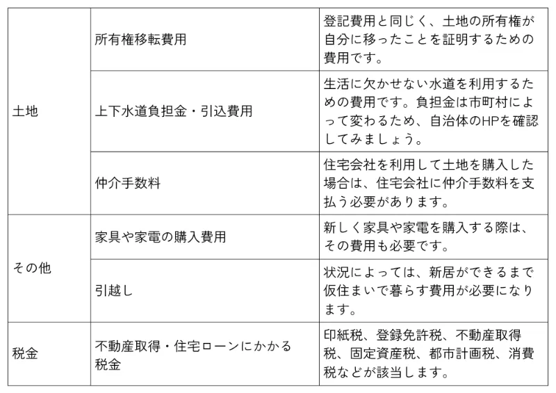 「建築費用」「付帯工事費用」「土地購入費用」「諸経費」についてご紹介しました。