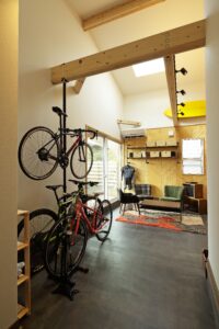 自転車を置いたり、趣味の道具をメンテナンスしたり使い勝手の良い土間スペース。