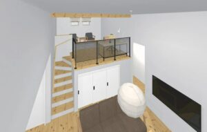上層部を天井の低いロフトとして、下層部分は独立した個室として使えます。スペースのとらなハシゴでの移動が可能です。