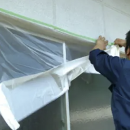 シートにはあらかじめ養生テープが付いていて養生したい箇所に貼ってシートを伸ばして覆うというもので、ホームセンターで購入可能です。慣れてない方でも割と容易に使いこなすことができます