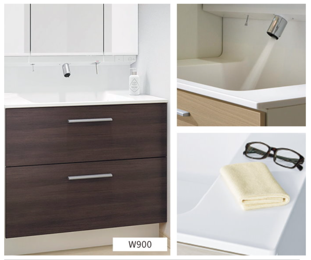 ボール部分に継ぎ目のない化粧台で、お掃除楽々。様々なバリエーション対応可能。