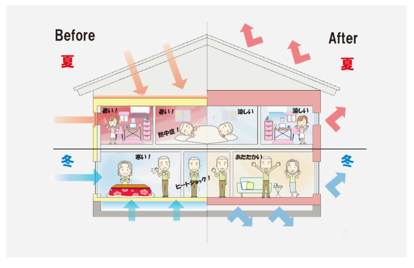 断熱性能向上で、エネルギー使用量を抑え、家計にも家族の健康にも良い効果が期待できます。