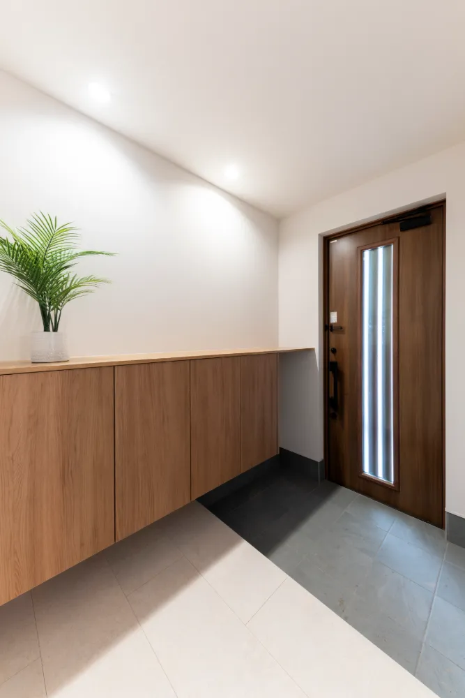 収納をとりつつ、お気に入りを飾るスペースも確保した玄関ホール。