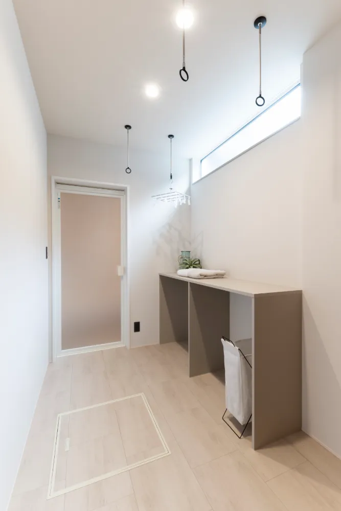 脱衣、洗濯、干す、しまうが1つのスペースで完結、家事楽動線