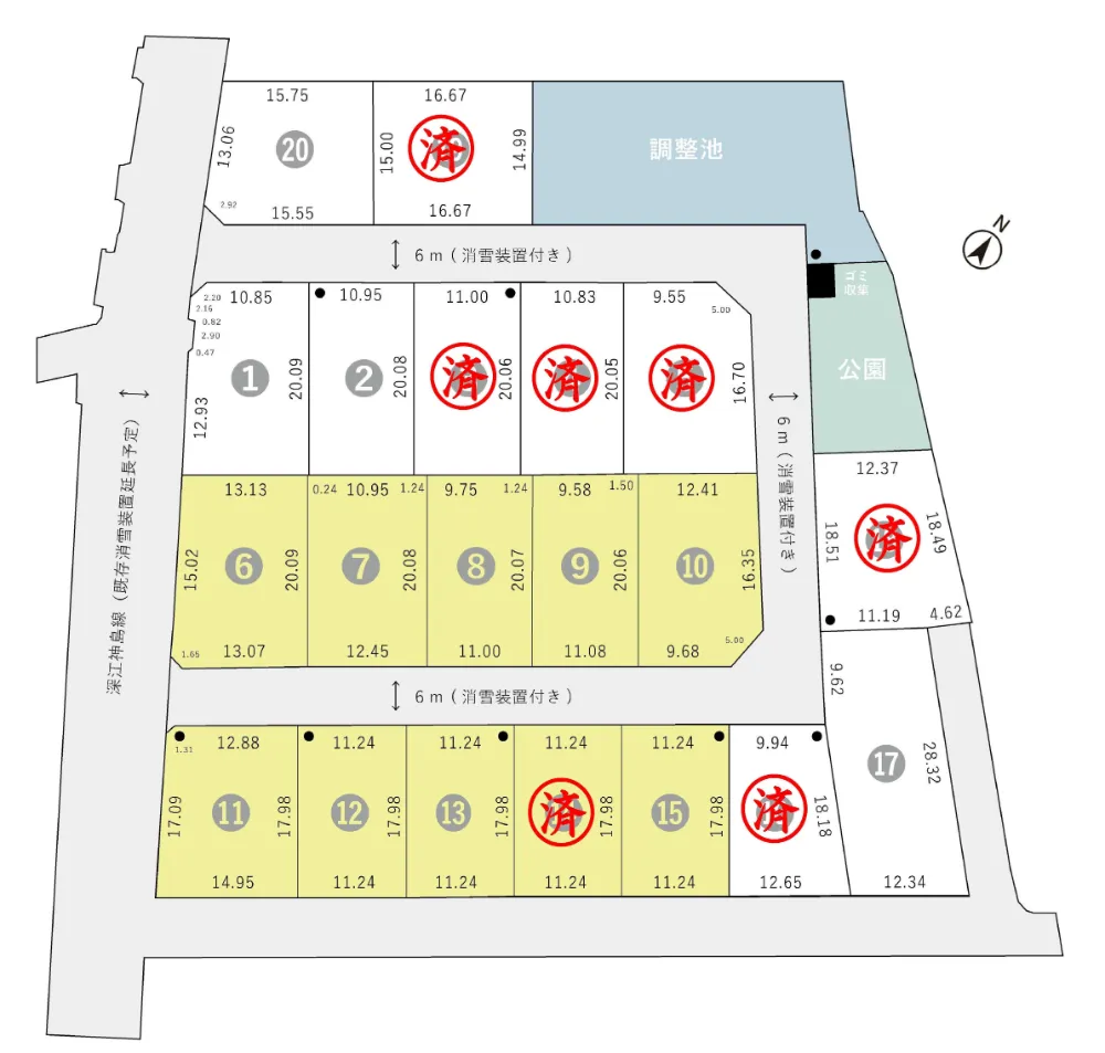 2026年3月20日現在 黄色の区画はオダケホームの建築条件付きです。