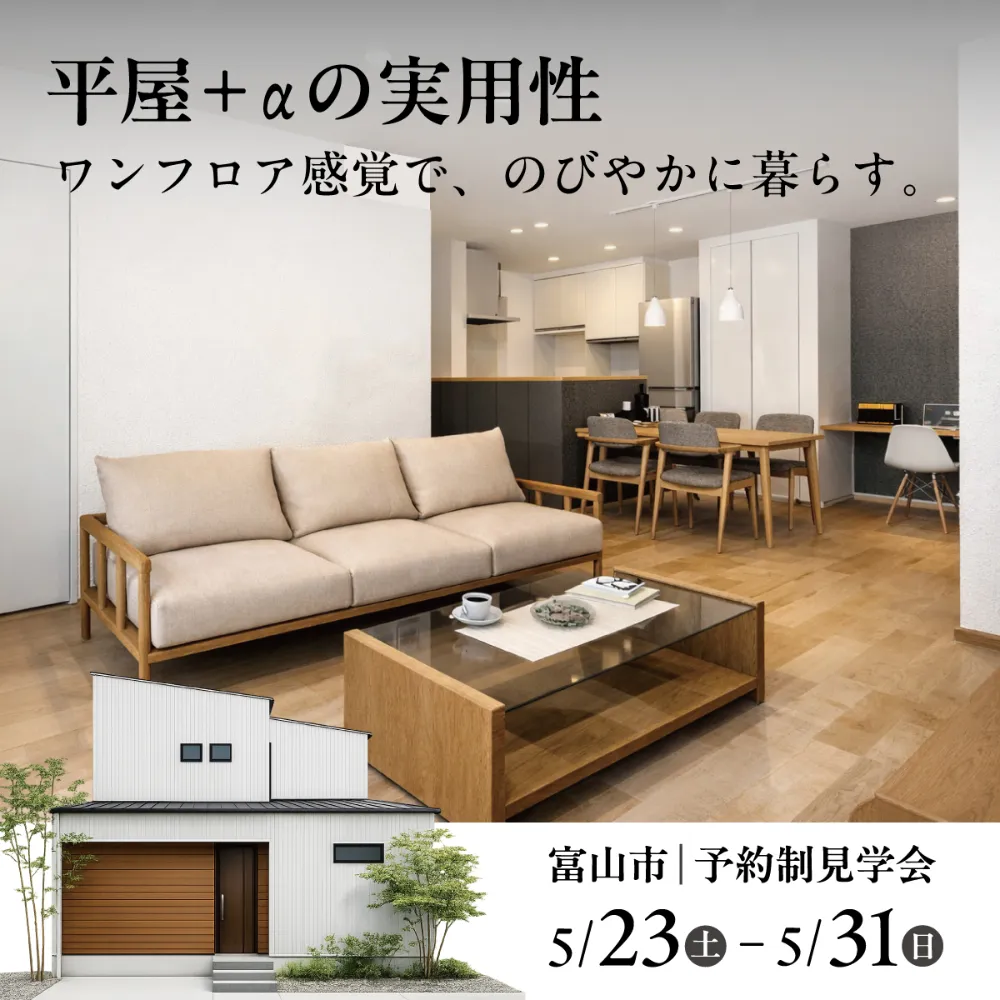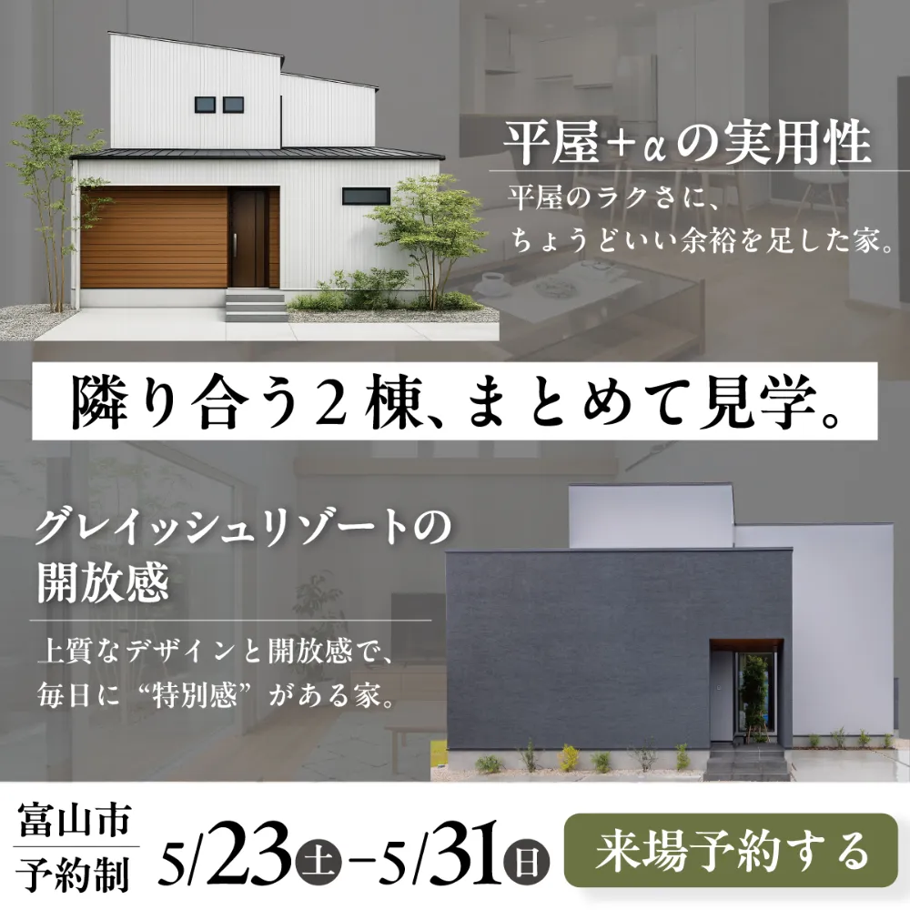 隣り合う2棟、まとめて見学。 平屋+αの実用性/グレイッシュリゾートの開放感【予約制見学会】